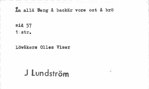 //// 1m allä Berg å backar vore ost å brö //// sid 57 1 str. //// Lövåkers Olles Viser //// J Lundström ////