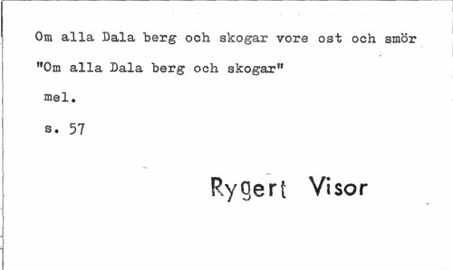 //// Om alla Dala berg och skogar vore ost och smör "Om alla Dala berg och skogar" mel. s. 57 //// Rygeri Visor ////