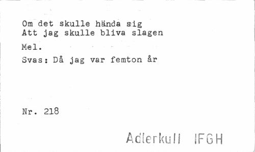 //// Om det skulle hända sig Ätt jag skulle bliva slagen //// Mel. //// Svas: Då jag var femton år Nr. 218 //// Adlerkuli IFGH ////