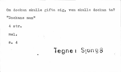 //// Om dockan skulle gifta sig, vem skulle dockan ta? "Dockans man" 4 str. mel. s. 4 //// Tegnei S|unö8 ////