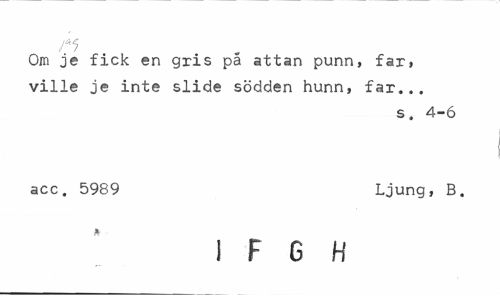 //// Om je fick en gris pa attan punn, far» ville je inte slide södden hunn, far... //// s. 4-6 //// acc. 5989 Ljung, B. //// IFGH ////