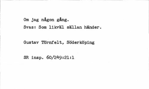 //// Om jag någon gång, //// Svass Som likväl sällan händer. //// Gustav Törnfelt, Söderköping //// SR insp. 60/249:21:1 ////