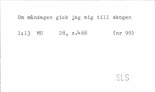 //// Om måndagen gick jag mig till skogen 1:13 MU 28, sA88 (nr 99) //// SLS ////