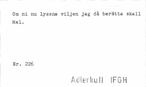 //// Om ni nu lyssna viljen jag då berätta skall Mel. //// Nr. 226 //// Adlerkull IFGH ////