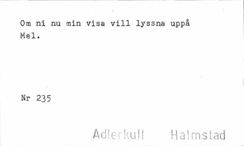 //// Om ni nu min visa vill lyssna uppå Mel. //// Nr 235 //// Adlerkull Halmstad ////