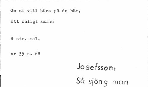 //// Om ni vill höra på de här, Ett roligt kalas //// 8 str. mel. nr 35 s. 68 //// Jo Sefsson? //// Så sjön q man ////