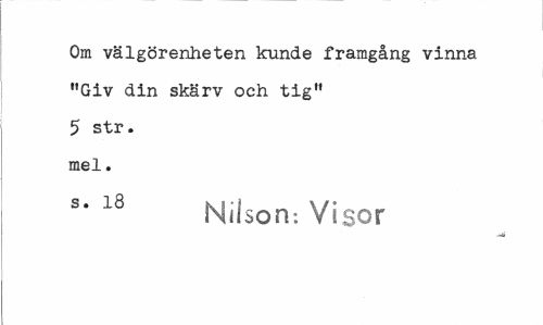 //// Om välgörenheten kunde framgång vinna "Giv din skärv och tig'1 5 str. mel. //// s- 18 Nilson: Visor ////