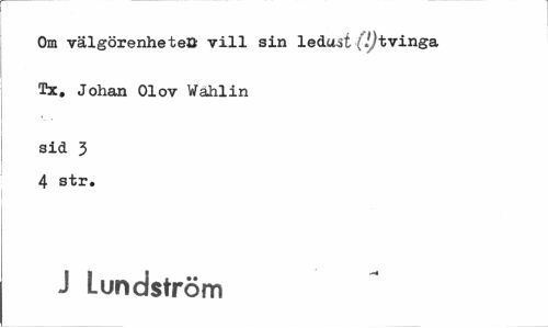 //// Om välgörenheteö vill sin leåust.('.^tvinga Tx, Johan Olov Wahlin //// sid 3 4 str. //// J Lundström ////
