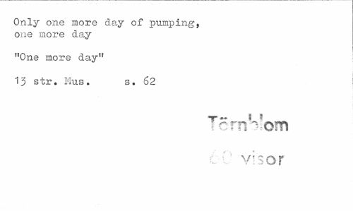 //// Only one more day of pumping, one more day //// "One more day" 13 str. Mus. s. 62 //// T~ II //// Trrn nom visor ////