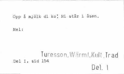 //// Opp å mjölk di ko' Mi står i åsen. Mel: //// Turesson, Wärml, Kult .Trad //// Del I, sid 154 //// Del. I ////