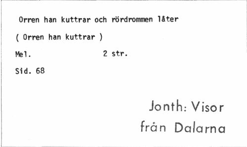 //// Orren han kuttrar och rördrommen låter ( Orren han kuttrar ) Mel. 2 str. //// Sid. 68 //// Jonth: Visor //// från Dalarna ////