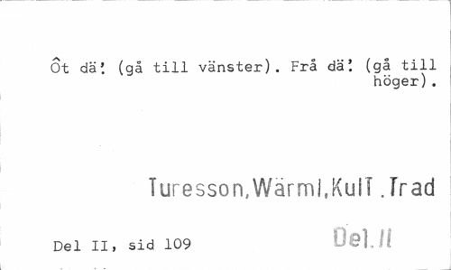 //// Ot dä\ (gå till vänster). Frå dä! (gå till //// höger) . //// Turesson,Wärmj.KulT. Trad //// Del II, sid 109 O©],/| ////