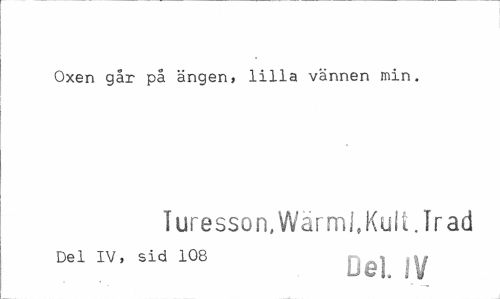 //// Oxen går på ängen, lilla vännen min. //// Turesson,WärmJ4Kulfc.Trad //// Del IV, sid 108 j aj yr ////