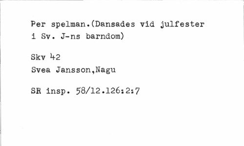 //// Per spelman.(Dansades vid julfester i Sv. J-ns barndom) //// Skv b2 //// Svea Jansson,Nagu SR insp. 58/12.126:2;7 ////