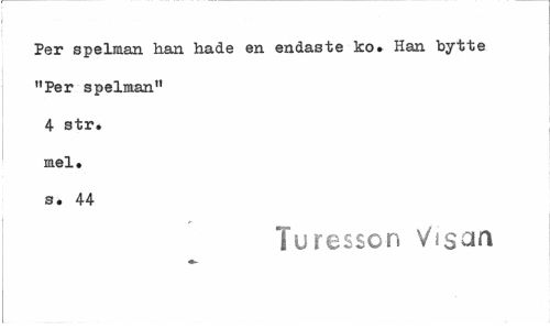 //// Per spelman han hade en endaste ko. Han bytte "Per spelman." 4 str. mel. s. 44 //// Turesson Vi san //// ___ ////
