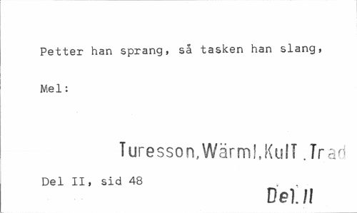 //// Petter han sprang, så tasken han slang» Mel: //// Turesson. Wärml.KulT .Trad //// Del II, sid 48 //// Del II ////