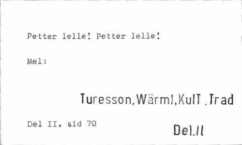 //// Petter lelle'. Petter lelle'. Mel: //// Turesson.Wärml.KulT .Trad //// Del II, sid 70 n //// Uel.lt ////