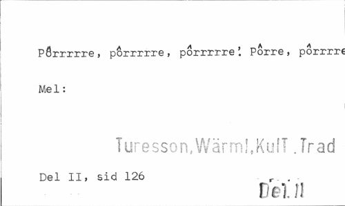 //// PÖrrrrre , pérrrrre , porrrrre Porre , porrrr< Mel: //// Turesson, Wärml.KulT .Trad //// Del II, sid 126 r . //// Del. 1! ////