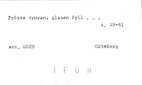 //// Prässa druvan, glasen fyll . . . //// s. 39-41 //// acc. 6029 Göteborg //// I F G H ////
