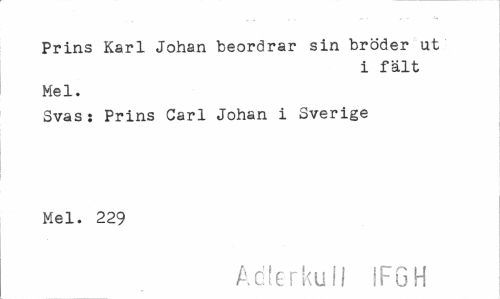 //// Prins Karl Johan beordrar sin bröder ut //// i fält //// Mel. //// Svas: Prins Carl Johan i Sverige Mel. 229 //// AdlerkulI IFGH ////