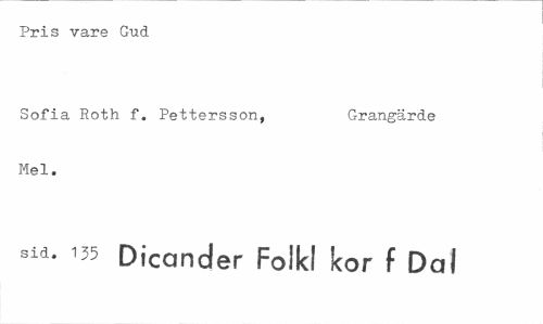 //// Pris vare Gud //// Sofia Roth f. Pettersson, Grangärde //// Mel. //// sid. 135 Dicander Folk! kor f Dal ////