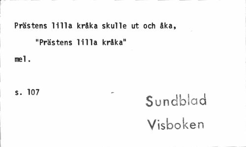 //// Prästens lilla kråka skulle ut och åka, "Prästens lilla kråka" //// mel. //// s. 107 - l! ? t //// Sundblad Visboken ////