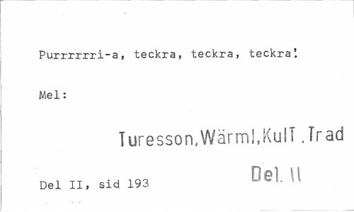 //// Purrrrrri-a, teckra, teckra, teckra'. Mel: //// Turesson,Wärml,Kull .Träd //// Del II, sid 193 ////