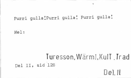 //// ? //// Purri gullaiPurri gulla'. Purri gulla'. Mel: //// Turesson,Wärml.KulI. Träd //// Del II, sid 128 //// Del. Ii ////