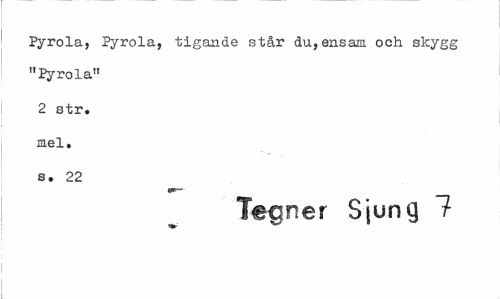 //// Pyrola, Pyrola, tigande står du,ensam och skygg "Pyrola" 2 str. mel, s. 22 //// Tecner Sjung t ////