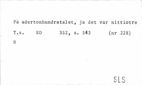 //// På adertonhundratalet, ja det var nittiotre T.s. KO 352, s. 543 (nr 228) //// N //// SIS ////