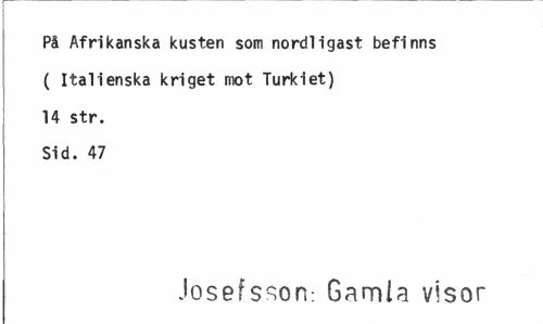 //// På Afrikanska kusten som nordligast befinns ( Italienska kriget mot Turkiet) 14 str. Sid. 47 //// Josefsson: Gamla visor ////