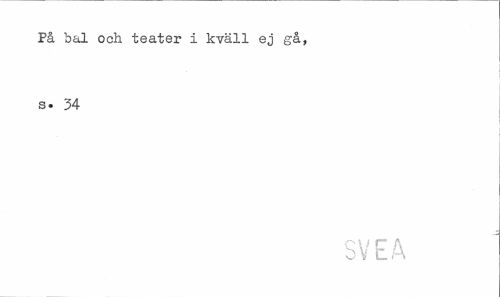 //// På bal och teater i kväll ej gå, s. 34 //// SVEA ////