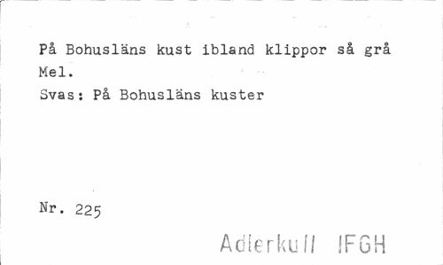 //// På Bohusläns kust ibland klippor så grå Mel. //// Svas: På Bohusläns kuster Nr. 225 //// Adlerkull 1FGH ////