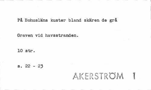//// På Bohusläns kuster bland skären de grå Graven vid havsstranden. 10 str. s. 22-2? //// ÅKERSTRÖM 1 ////