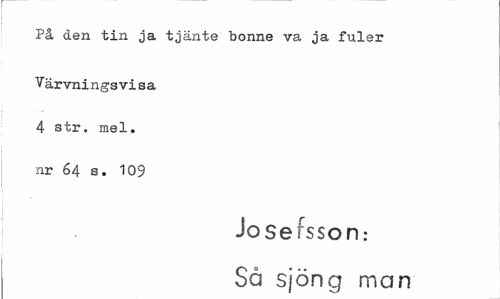 //// På den tin ja tjänte bonne va ja fuler //// Värvningsvi sa 4 str. mel. nr 64 s. 109 //// i //// Josefsson: //// Så sjöng man ////