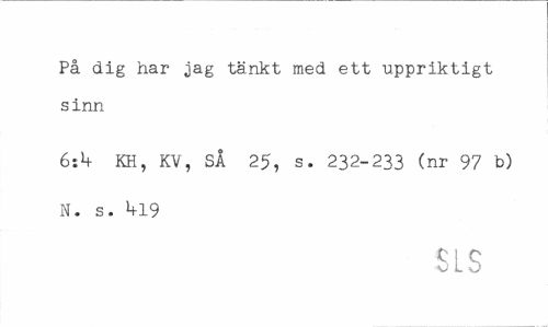 //// På dig har jag tänkt med ett uppriktigt sinn //// 6:*+ KH, KV, SÅ 25, s. 232-233 (nr 97 b) N. s. ifl9 //// ELS ////