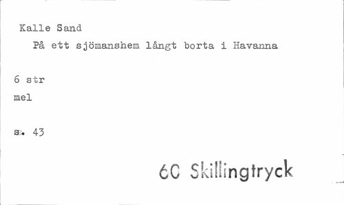 //// Kalle Sand //// På ett sjömanshem långt borta i Havanna //// 6 str mel //// 3, 43 //// 6C Skillingtryck ////