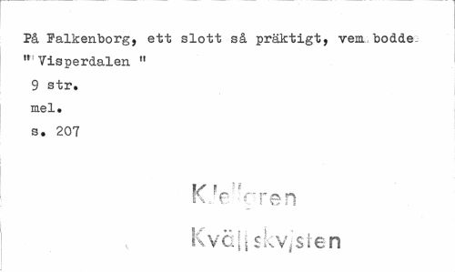 //// På Falkenborg, ett slott så präktigt, vem bodde-Visperdalen " 9 str. mel. s. 207 //// KJe ren | Kvöii skvjsten ////