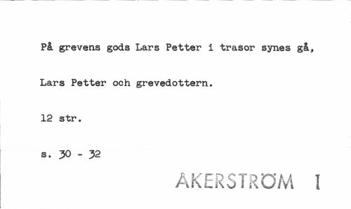 //// På grevens gods Lars Petter i trasor synes gå, Lars Petter och grevedottern. 12 str. s. 30 - ?2 //// ÅKERSTRÖM I ////
