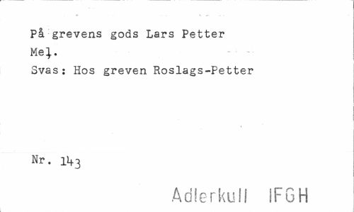 //// På grevens gods Lars Petter Me}. //// Svas: Hos greven Roslags-Petter Nr. ii+3 //// Adlerkull IF6H ////