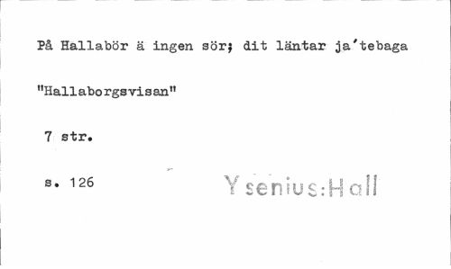 //// På Hallabör ä ingen sörj dit läntar ja'tebaga "Hallaborgsvisan" 7 str. //// s- 126 YseniusrHolI ////