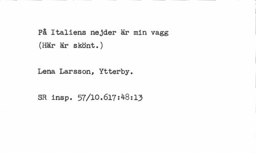 //// På Italiens nejder är min vagg (Här är skönt.) //// Lena Larsson, Ytterby. //// SR insp. 57/10.617:48:13 ////