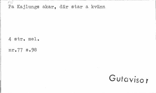 //// Pa Kajlungs akar, där star a kvänn 4 str. mel. //// nr.77 s.98 //// Gutaviso r ////