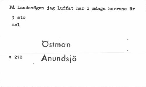 //// På landsvägen jag luffat har i många herrans år //// 3 str mel //// östman 8 210 Anundsjö //// w ////