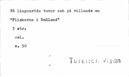 //// På lingonröda tuvor och på villande mo "Flickorna i Småland" 3 str. mel. s. 50 //// Turenen /isan ////
