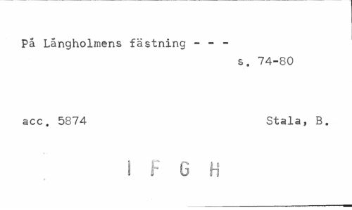 //// På Långholmens fästning - - - //// s, 74-80 //// acc. 5874 Stala, B. //// I F G H ////