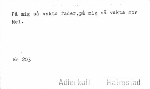 //// På mig så vakta fader,på mig så vakta mor Mel. //// Nr 203 //// Adlerkuii Halmstad ////