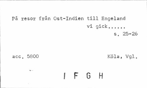 //// På resor från Ost-Indien till Engeland //// vi gick... //// s. 25-26 //// acc. 5800 Köla, Vgl. //// ! F G H ////