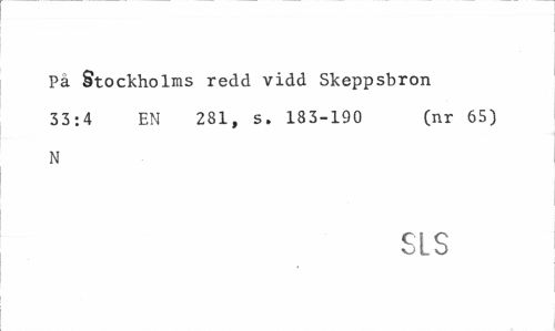 //// På Stockholms redd vidd Skeppsbron 33:4 EN 281, s. 183-190 (nr 65) //// N //// SLS ////