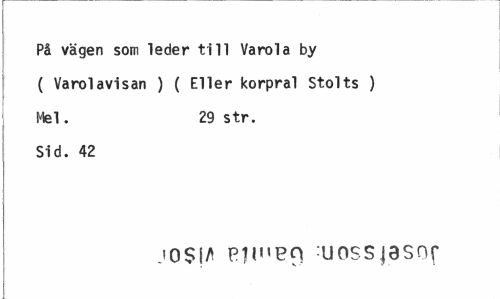 //// På vägen som leder till Varola by ( Varolavisan ) ( Eller korpral Stolts ) Mel. 29 str. //// Sid. 42 //// piopo nossjasof ////